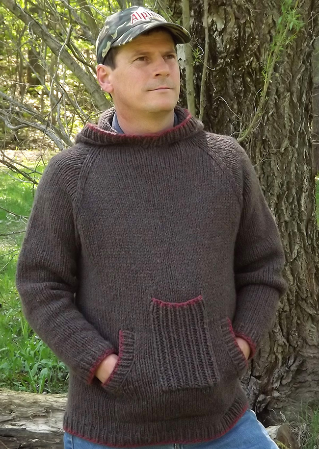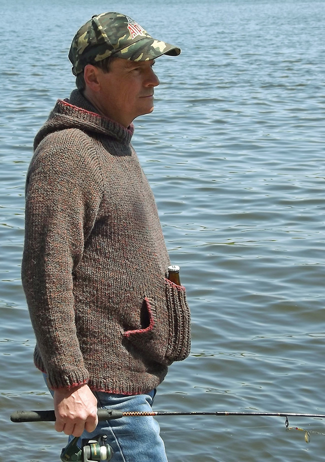 Bottle Rocket hoodie, a free knitting pattern from Knitty.com. Free knitting pattern for a pullover hoodie with kangaroo pockets and a dedicated pocket for a bottle of the beverage of your choice.