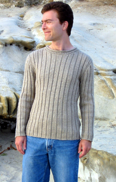 26 sts/32 rows = 4" in 5x3 rib on larger needles