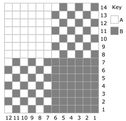 Mad for Plaid cowl with pompoms, a free knitting pattern from Knitty.com. Free knitting pattern for a checkered cowl with pompoms on either edge.