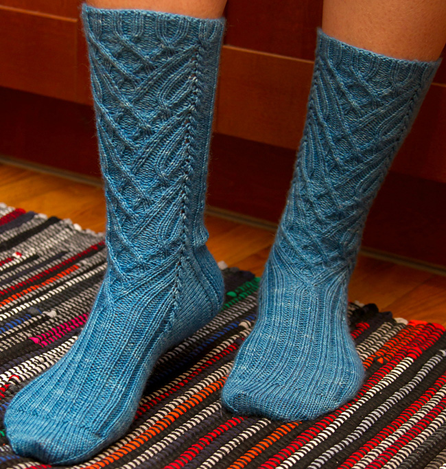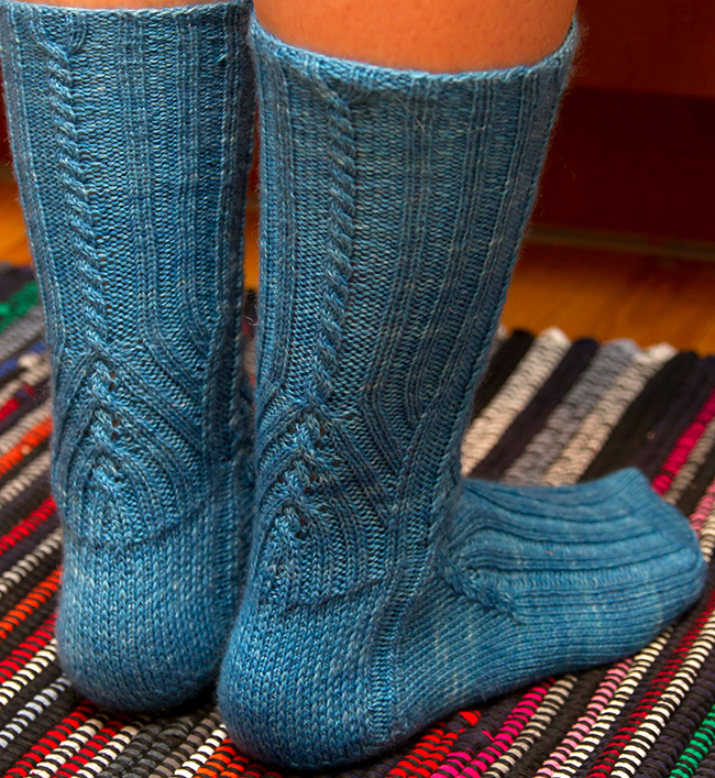 Similarly, this sock pattern isn’t that tricky, but it is chock full of cables, increases, and decreases which make the journey a challenge. However, once you get used to the rhythm of the pattern, the going gets easier and at the end you’ll be rewarded with a fabulous FO.