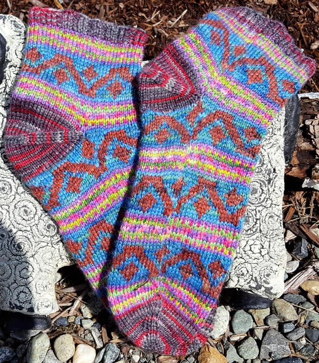 Back to the Beginning a free knitting pattern from Knitty.com. Free knitting pattern for a Middle-East-inspired colorwork sock.