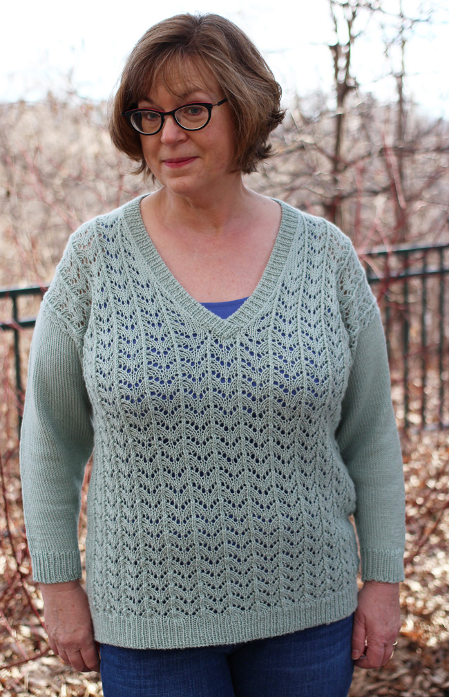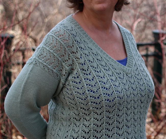 About Lace, a free knitting pattern from Knitty.com. Free knitting pattern for a v-neck pullover with a lace body and solid sleeves.