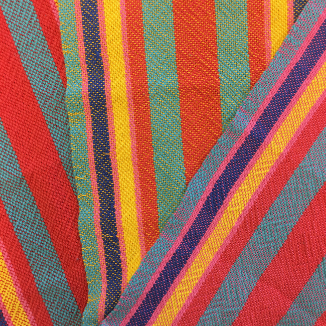 This may seem a bit obvious, but color also affects color. Gil, one of my New Mexico Tech students from Spring semester last year, modified the stripe pattern and colors of the Dealer's Choice Towels from the revised edition of Weaving Made Easy, to match his Fiestaware. He used the same yarns called for in the pattern: Lion Brand Kitchen Cotton in the warp and unmercerized 8/2 cotton in the weft. By changing the weft color for each towel, he was able to shift the appearance of the warp stripe, sometimes pretty dramatically.