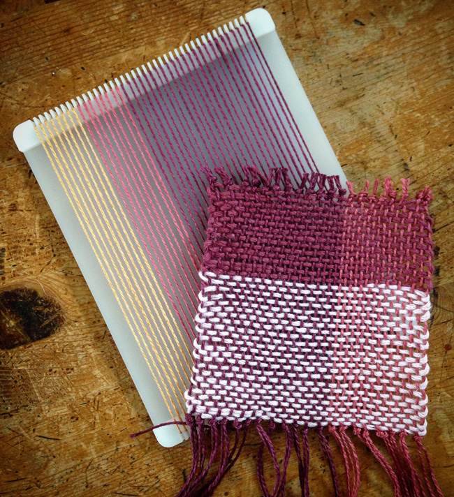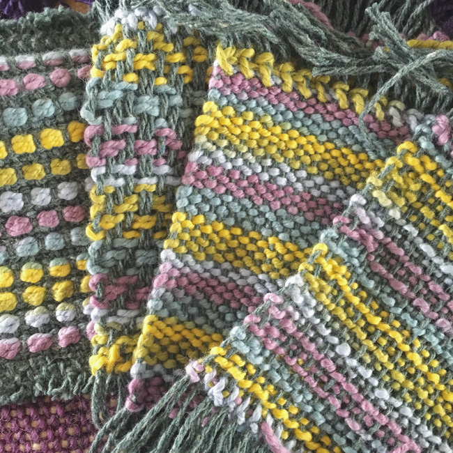 Then, you guessed it, I sample. In the Deep Fall 2015 Get Warped column, I shared some tips for sampling. Sampling can be as simple as committing to your warp colors, but allowing a few extra inches to testing out your weft colors. If you are venturing into a big project such as a set of towels or a throw, it pays to take the time to be sure you like your colors before proceeding. What looks good on the loom can change once the fabric is off the loom and washed.