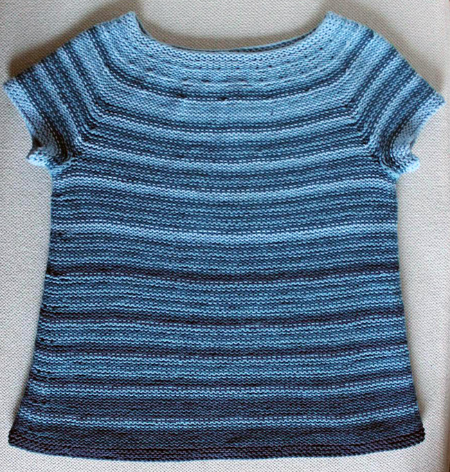Airelle, a free knitting pattern from Knitty.com. Free knitting pattern for a reverse stockinette a-line tee pullover.