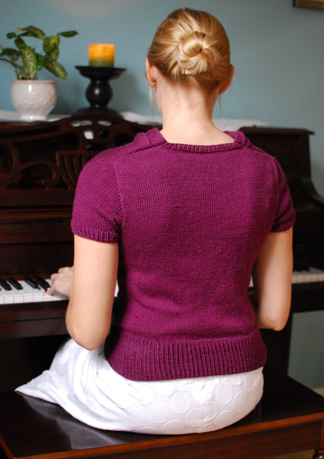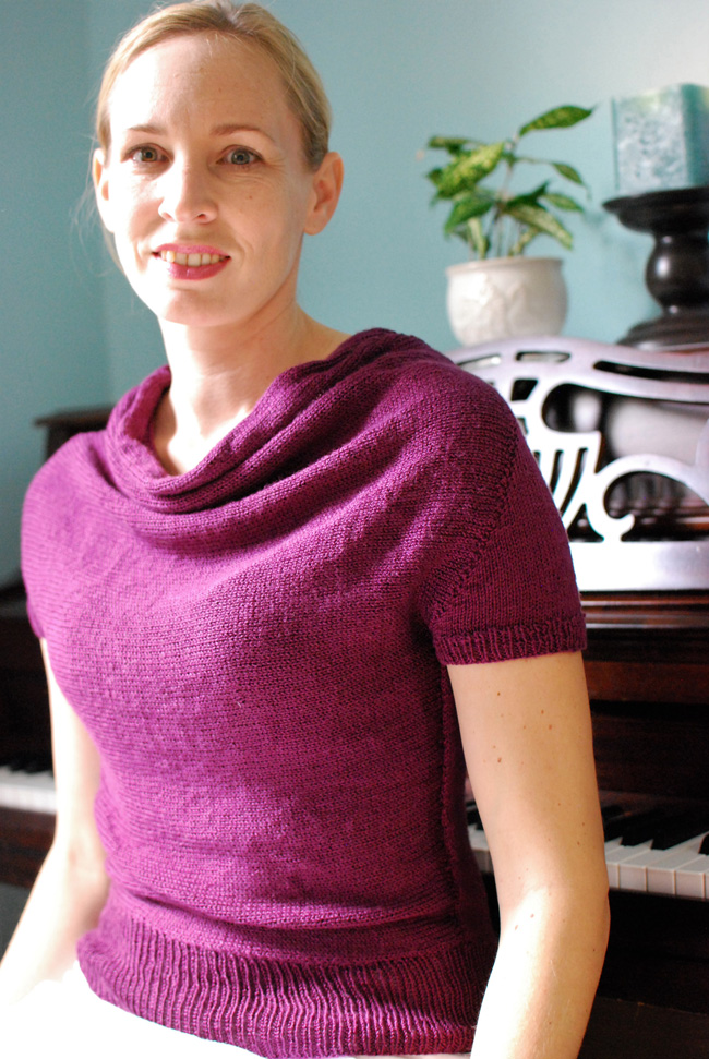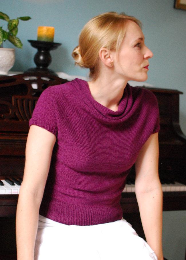 Recital, a free knitting pattern from Knitty.com. Free knitting pattern for a shirred-neck short-sleeved pullover.