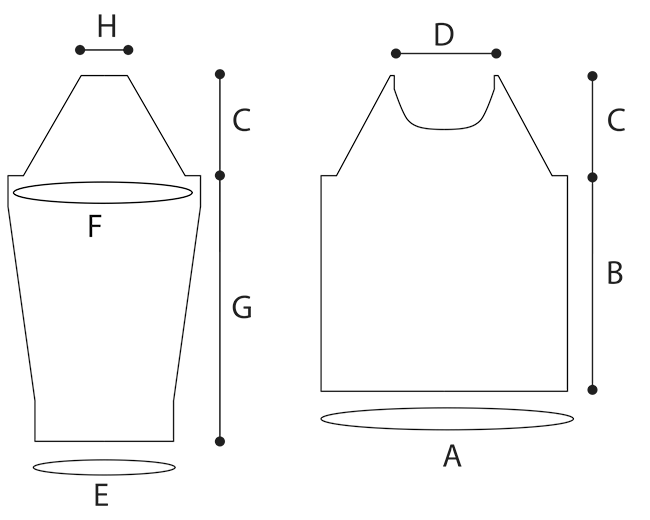 Chest circumference at underarm: 32.75[35.25, 40.5, 45.5, 48, 53, 55.5, 60.75, 63.25] inches/ 83[89.5, 103, 115.5, 122, 134.5, 141, 154.5, 160.5] cm