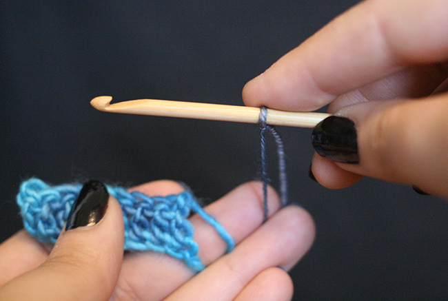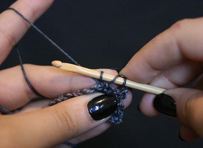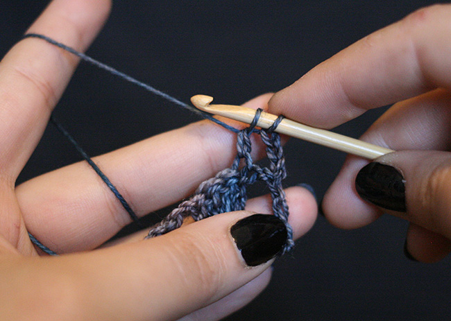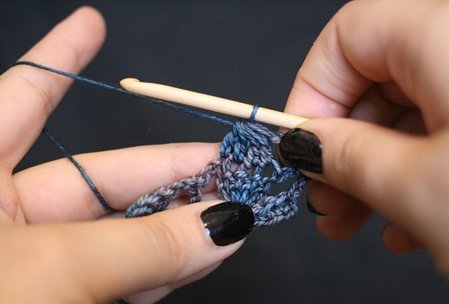 Insert your hook into the appropriate stitch
