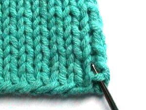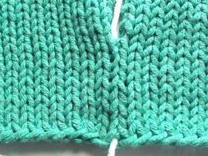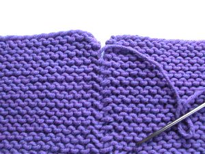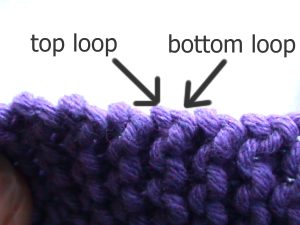 Before you start, you'll need to inspect the edge stitch that's created when working in garter stitch. Each garter stitch ridge leaves a edge stitch with a top loop and a bottom loop. Garter stitch seaming joins these loops to create the appearance that the knitting is continuous.