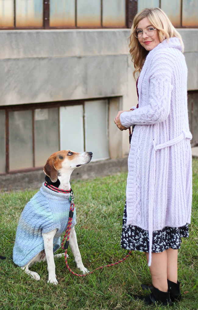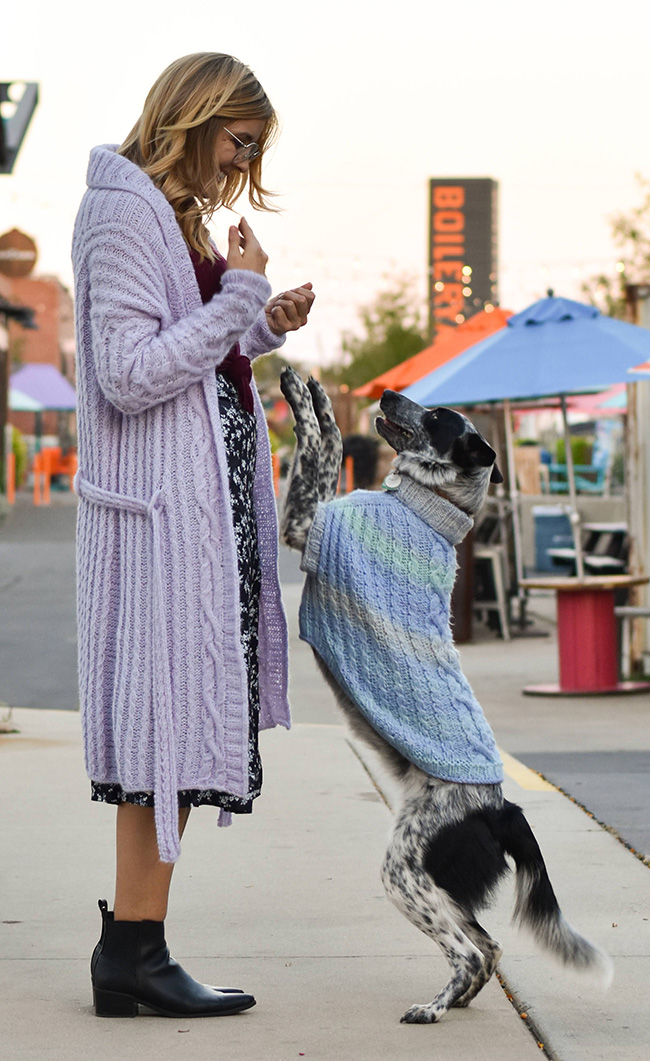 The Skift Dog Sweater is an ode to my dog, George. He's new to my family, as we adopted him in July. As I was designing the Skift Cardigan (also featured in this issue!), I couldn't help but think it would be so fun to complement it with a matching dog sweater, especially after learning that George loves to roll around on laundry and enjoys being tucked into the blankets at bedtime. Plus, why should humans have all the fun when it comes to hand knitted sweaters? The Skift Dog Sweater will be the perfect outfit for your best friend this winter, and they'll be the envy of everyone at the dog park!