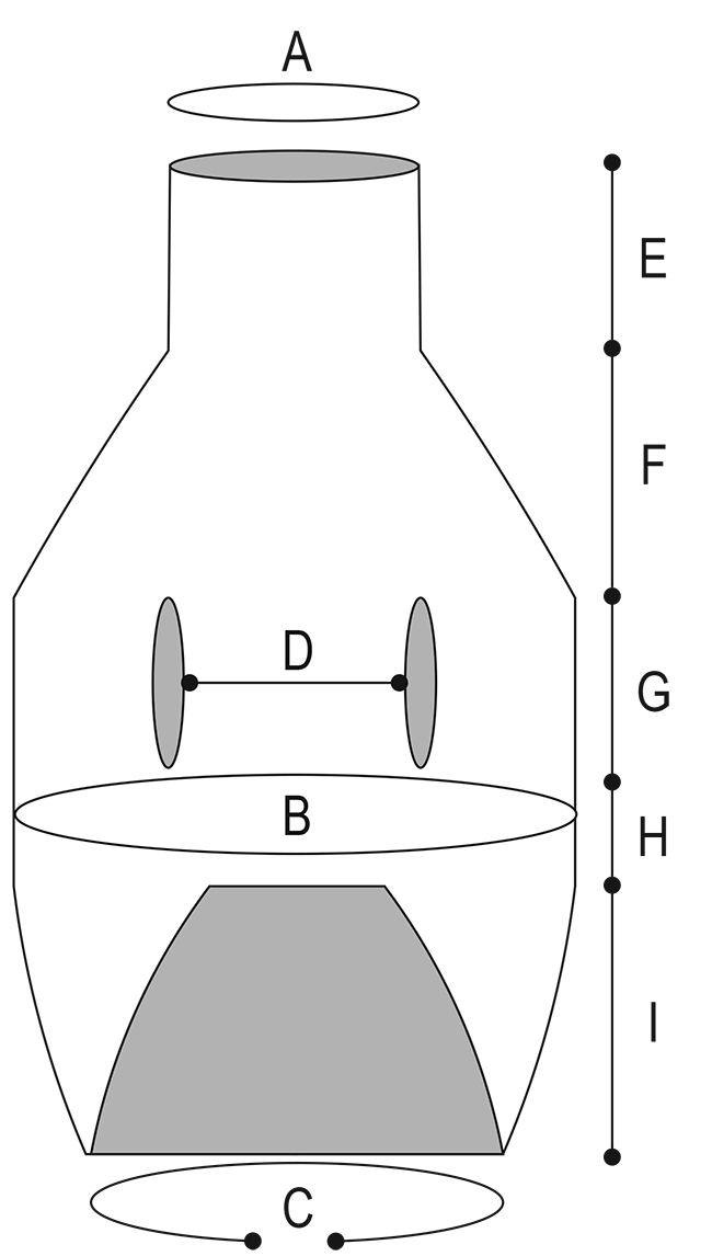 D – Width between leg openings: 2[3, 4, 6, 8] inches / 5[7.5, 10, 15, 20.5] cm
