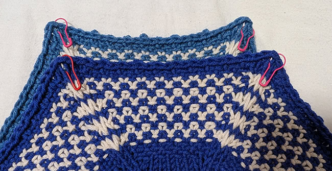 Step 2: Then, flip each component over so the wrong side is facing, and align the stitch markers at the beginning and end of each edge to be seamed.