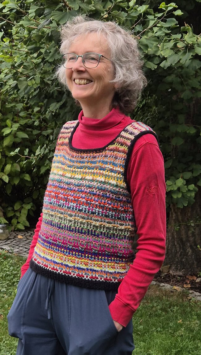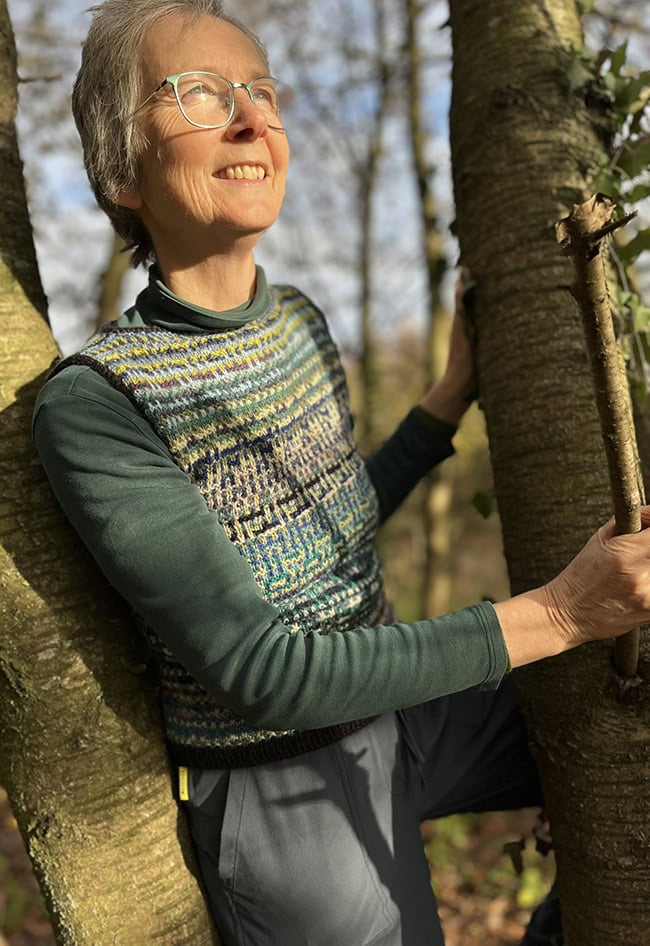 Kate has been a knitter and lover of anything woolly since childhood. She survived more than 40 years working in healthcare by playing viola, walking outdoors and knitting, hopefully not all at the same time. Since retirement in 2022, Kate has had a lot of fun trying vainly to reduce her stash, designing knitwear and playing with natural dyes in her garden shed. As well as a roomful of fiber and yarn, she has three grown-up children, a husband and a cat, and a growing number of grandchildren and granddogs. She lives in North Yorkshire close to the moors and the sea.