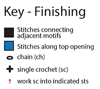 While it is possible to join motifs as you finish them, doing so will make it hard to block the motifs, so I recommend completing the motifs then joining as described below.