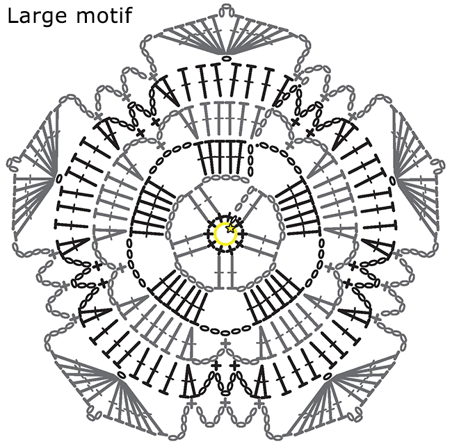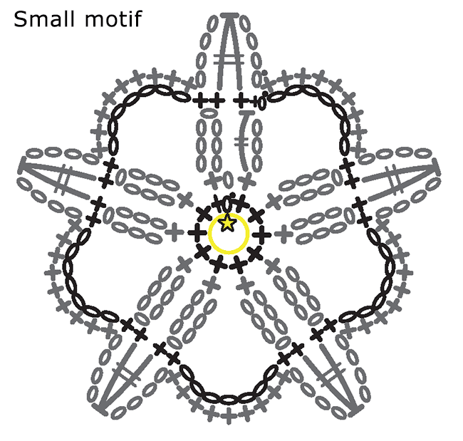 One Small motif: 3.75 inches / 9.5 cm across between the widest points